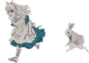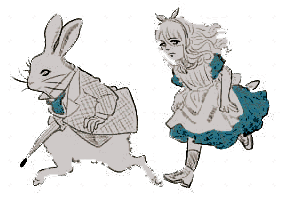 BEWARE THE JABBERWOCK, ALICE! THE JAWS THAT BITE, THE CLAWS THAT CATCH! CHASE THE WHITE RABBIT, AND SHUN THE FRUMIOUS BANDERSNATCH!